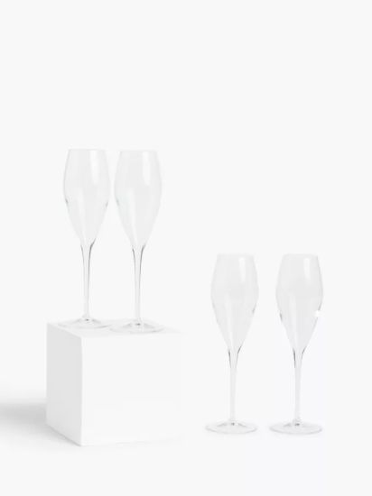 • Crafted in Italy from high-tech crystal glass, this set of four flutes combines modern style with traditional design.