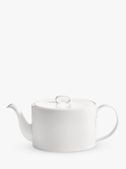 • This teapot is crafted from stylish white fine bone china. Each piece features a carefully crafted intaglio texture with the pattern going deep into the surface. The collection is clean and modern and is dishwasher and microwave safe.