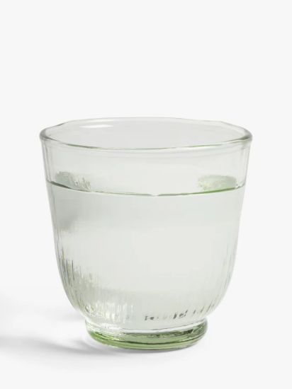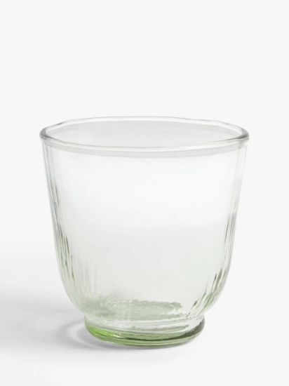 • Recycled glass gives this tumbler a vintage look, while the ribbed rim adds texture.