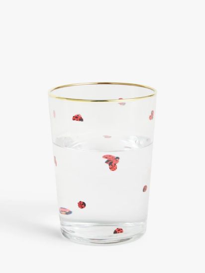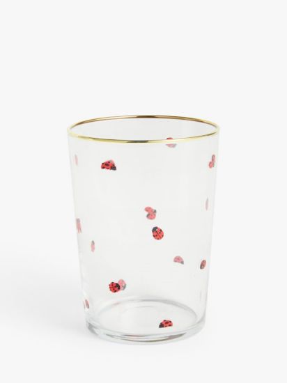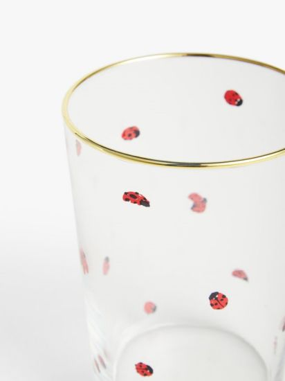 • A natural lover's choice, this glass features a screen-printed ladybug and a gold rim. Perfect for soft drinks and cocktails.
